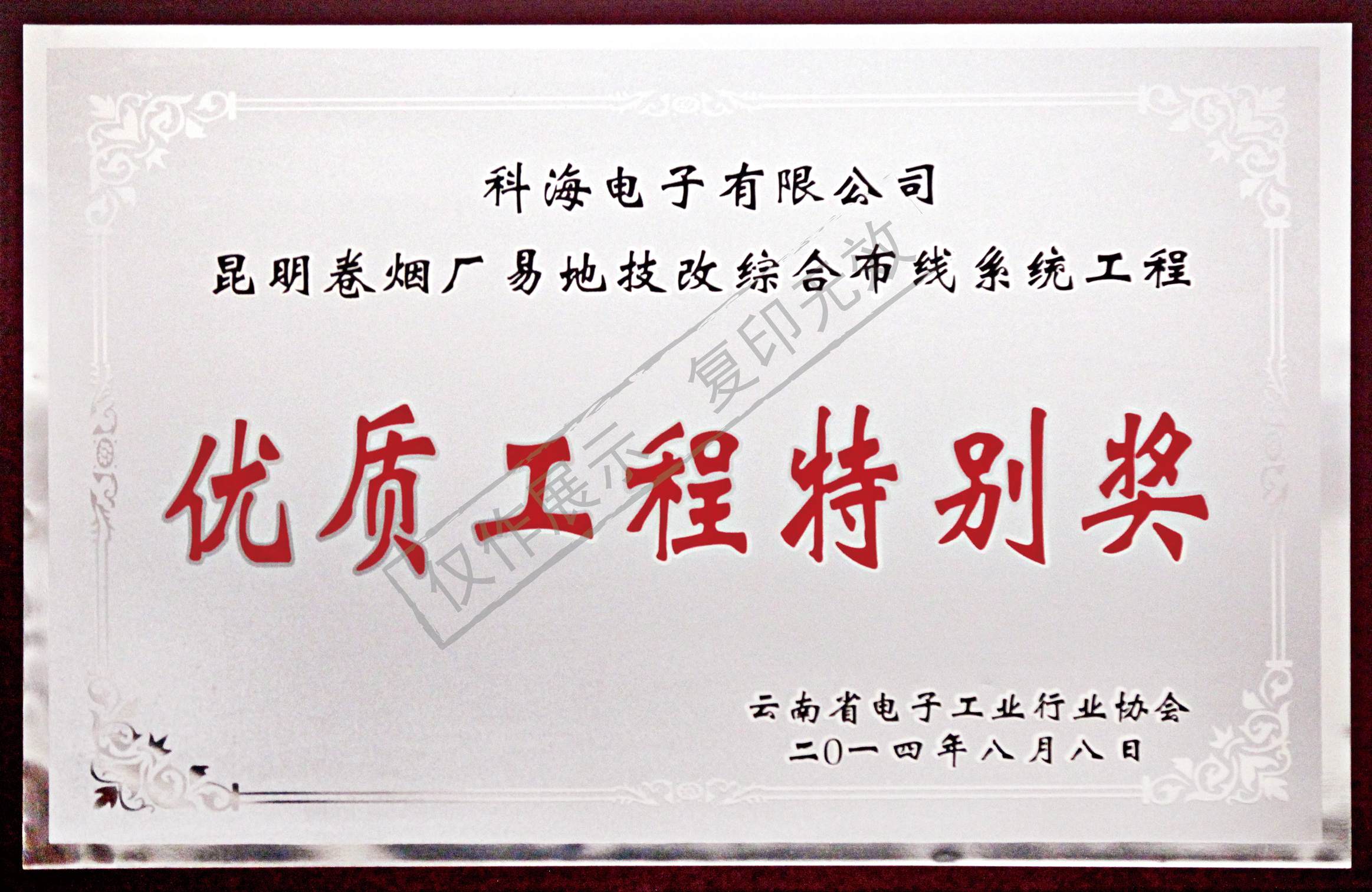 昆明煙廠易地技改優(yōu)質(zhì)工程特別獎