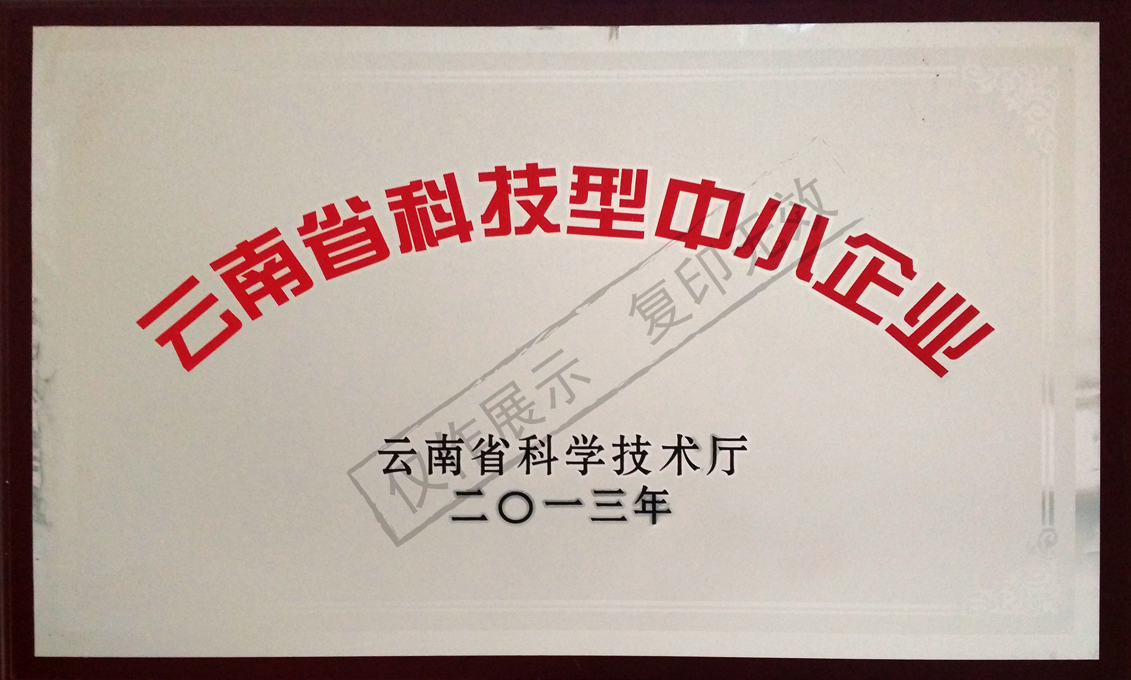 云南省科技型中小企業證書